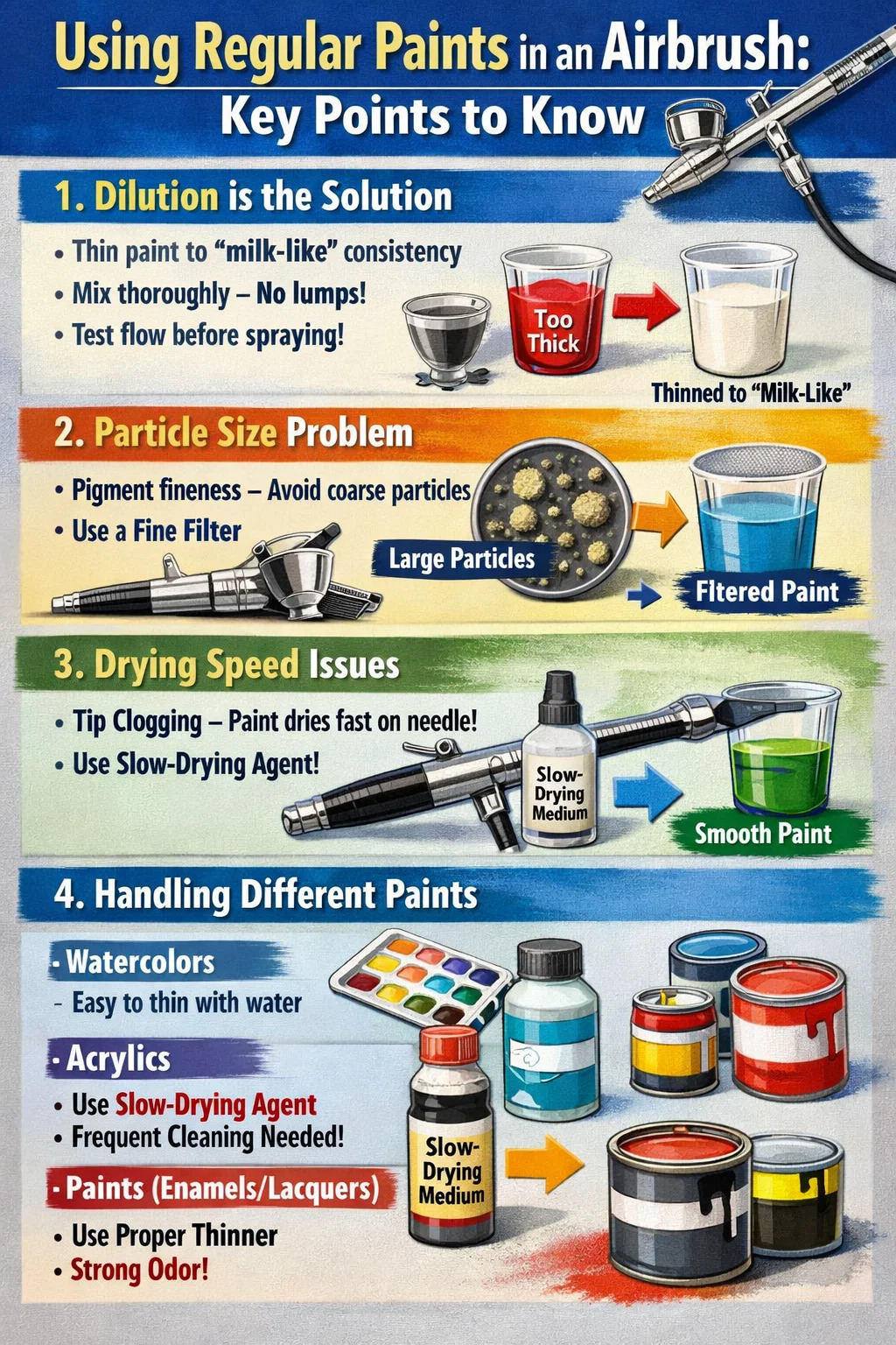 Om du vill använda dina vanliga färger till airbrushing måste du vara uppmärksam på följande nyckelpunkter: