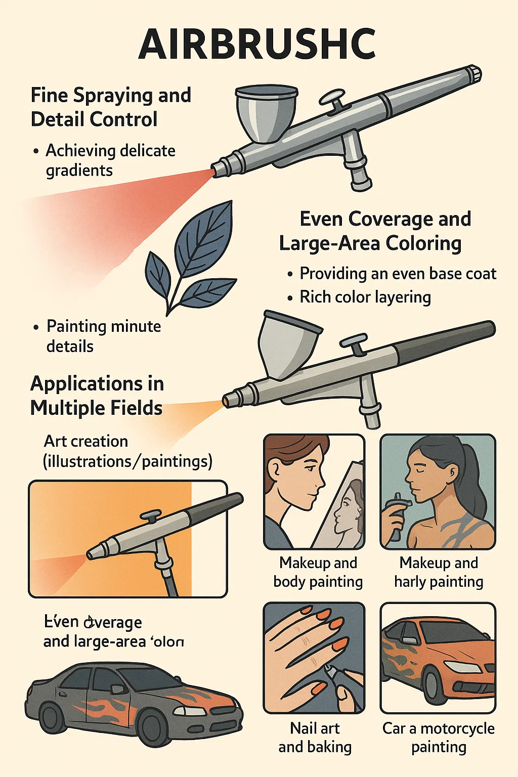 Airbrushes har ett brett utbud av applikationer, inklusive följande huvudområden: