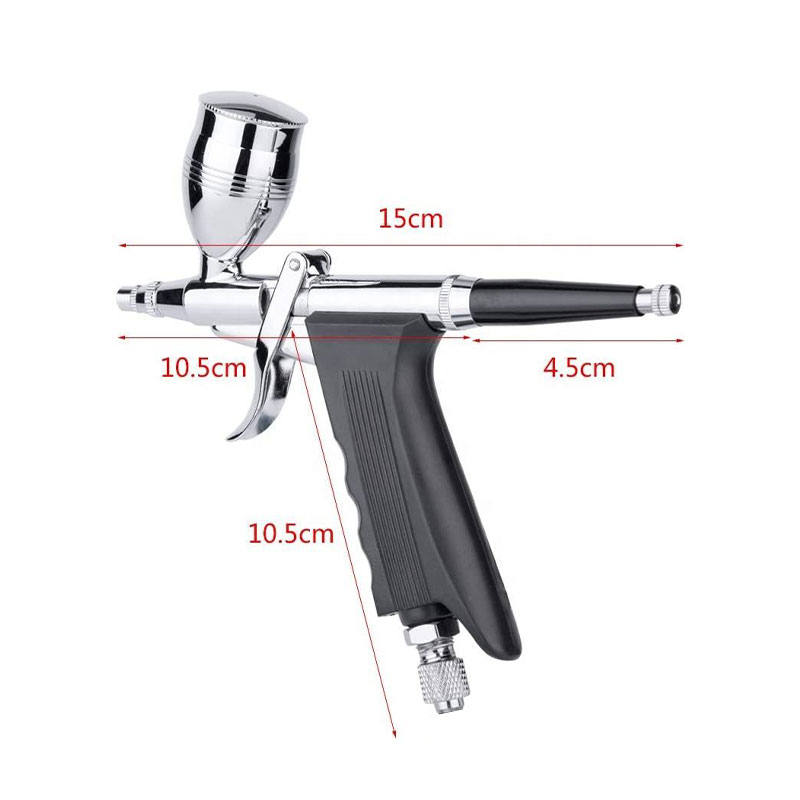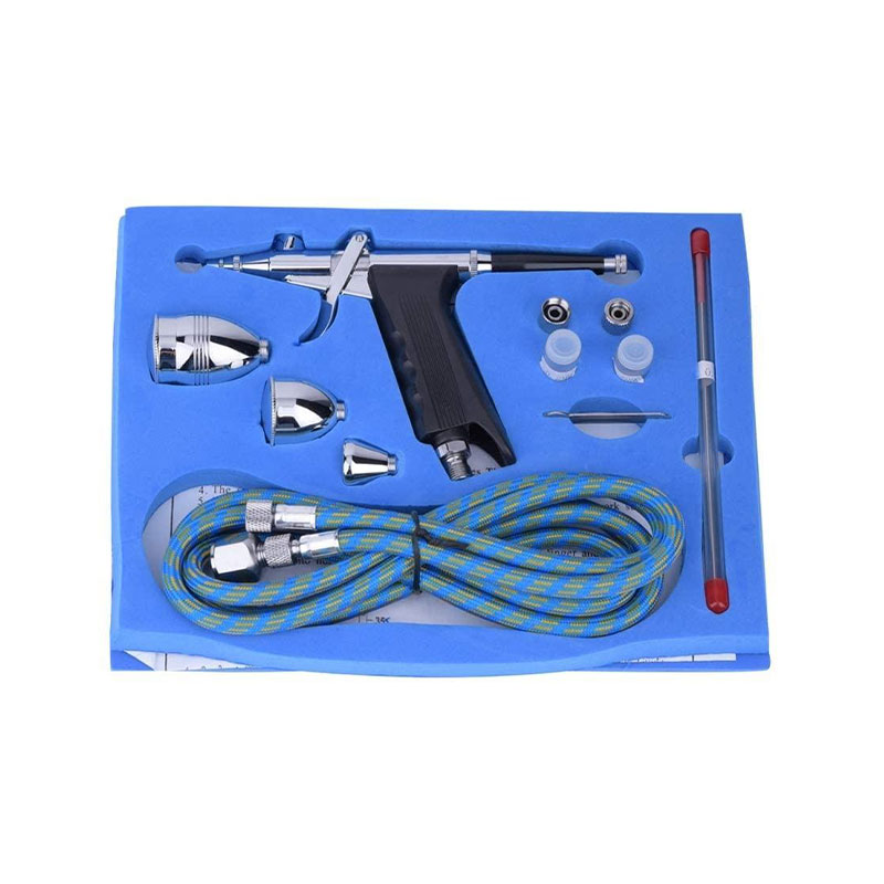 Pistolgreppdesignen gör det möjligt för användare att hålla enheten mer fast och därmed förbättra operationens noggrannhet och stabilitet. I uppgifter som kräver exakt kontroll som sprutning och skjutning är ett stabilt grepp avgörande. Pistolgreppet gör det möjligt för användare att mer exakt kontrollera rörelsen och spruta riktningen för den dubbla action Airbrush Paint Sprayer Pistol Grip, 2CC, 5CC och 13CC-alternativ med 3 olika koppar genom att ge ett bekvämt grepp och bra handstöd.